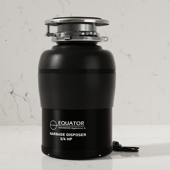 Step Up Your Kitchen Game with the new and innovative Equator 3/4 HP Garbage Disposer. This appliance boasts advanced features like a 2-stage grinding system, stainless steel grinding components, and continuous-feed operation. The GD 075 Garbage Disposer features rust-resistant parts, overload protection, and a removable water baffle for durability.  Operating at 120V with a powerful 1700 RPM AC motor, this garbage disposal is both energy-efficient and a premier performer. For a seamless setup, the garbage disposer comes with all necessary accessories, including screws, an impounder, a 3-bolt assembly system, a shockproof ring, and more. Additionally, it features a 360° Clean Rinse system and ultra-quiet operation (<70 dB). Measuring 12.6" x 7.09" x 7.09" inches, the garbage disposer includes a complementary power cord for easy installation under your sink. It is also UL-certified and has a 1-year parts and labor warranty. Improve your kitchen experience with the all-new Equator GD 075 Garbage Disposer today.